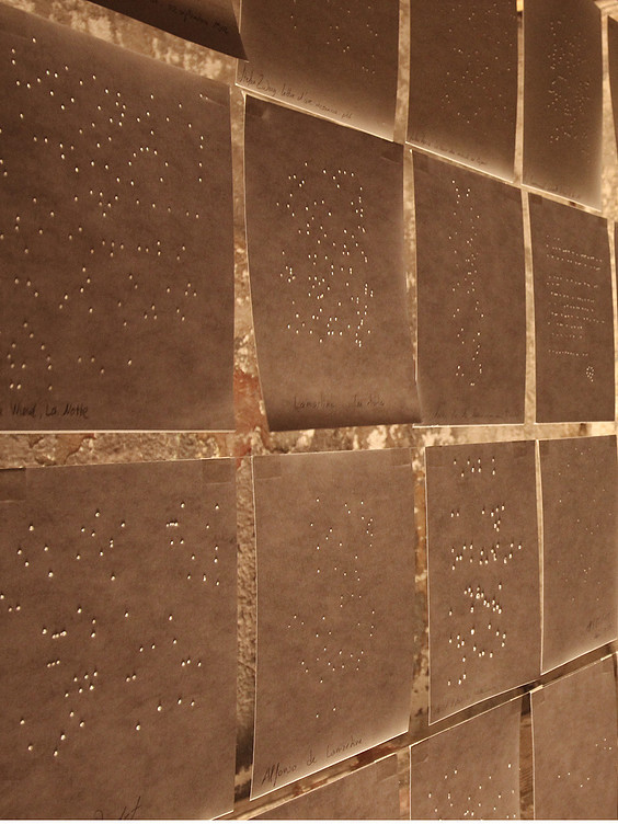 Constellations, amène le lecteur-spectateur à participer, à partir de textes littéraires ou de ces souvenirs écrits, il perce les points des lettres i et j, ainsi que les points de ponctuations.